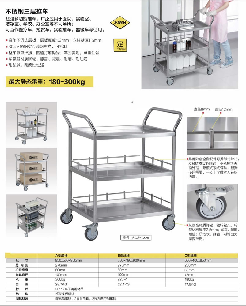 不銹鋼三層推車